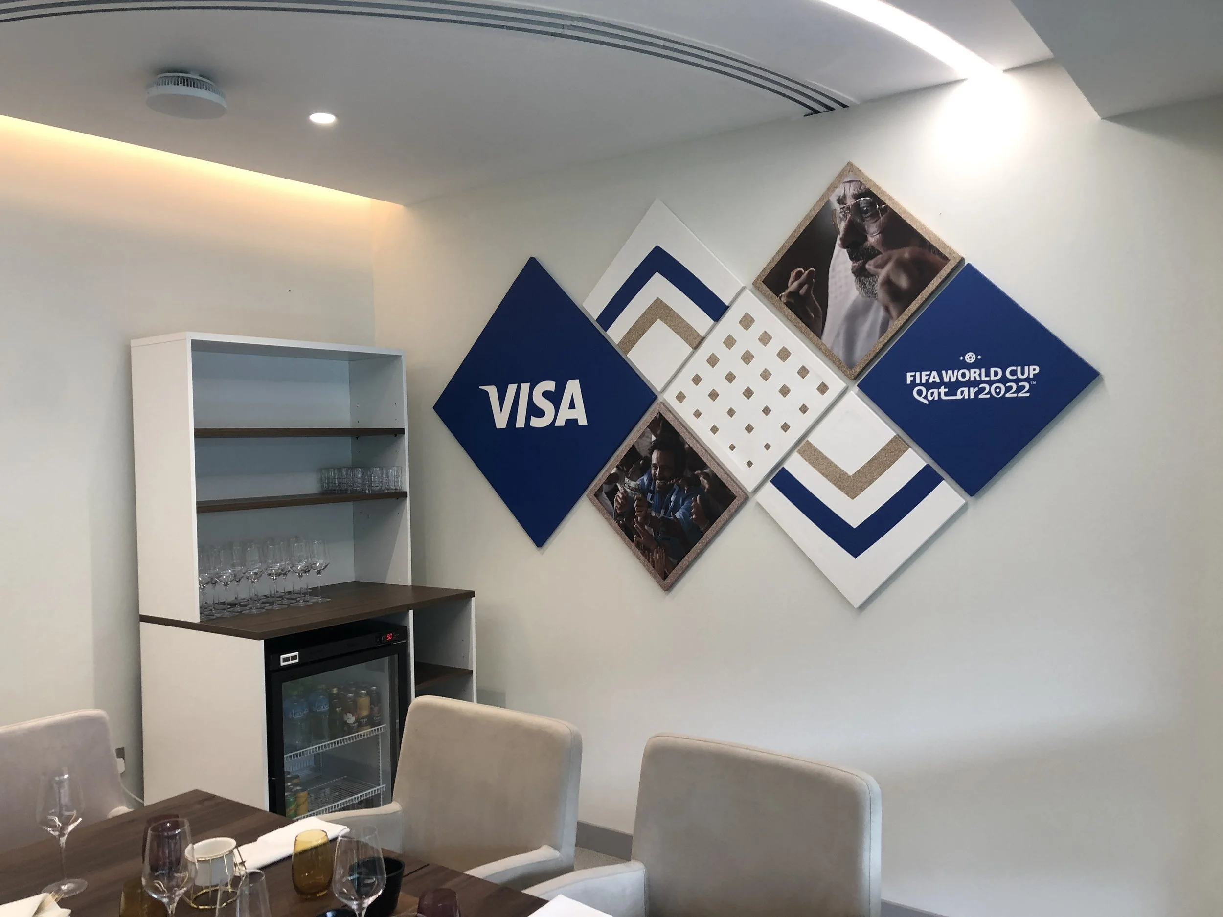 At the FIFA World Cup Qatar 2022, we built a brand system that scaled – anchored by one powerful idea carried seamlessly across dozens of touchpoints, from hospitality suites to tent cards. We chose a soft diamond form from FIFA’s visual identity system to serve as the connecting thread across all Visa work on site in Doha.